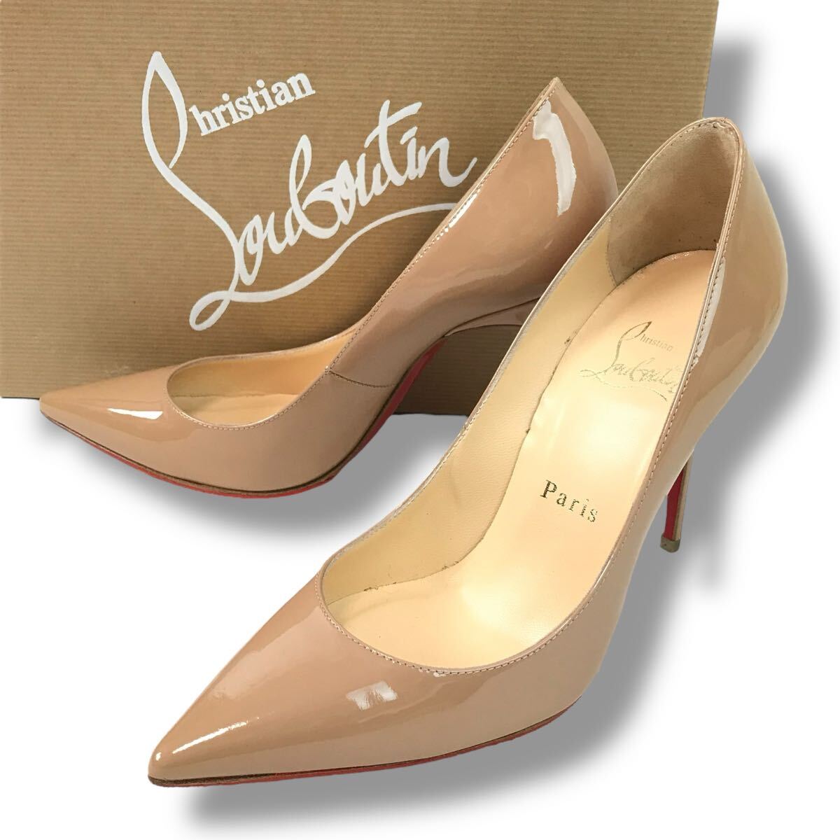 - e21 新品同様 Christian Louboutin クリスチャンルブタン エナメル パンプス パテントレザー ハイヒール ベージュ ピンヒール 36 正規品
