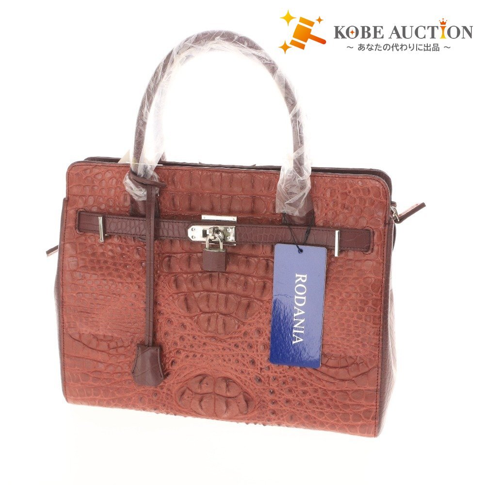 > ■ ロダニア ハンドバッグ 3002L 鞄 ショルダー 2way クロコダイル革 ベトナム製 レディース 赤茶 タグ付き 未使用 付属品付き