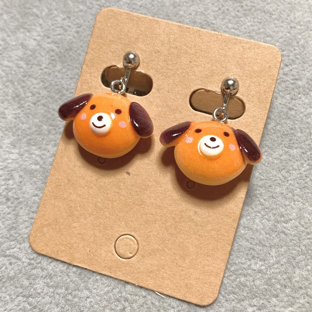 - 【訳あり品】にこにこわんちゃんパンネジバネ式イヤリング ドッグ犬たれみみブレッド