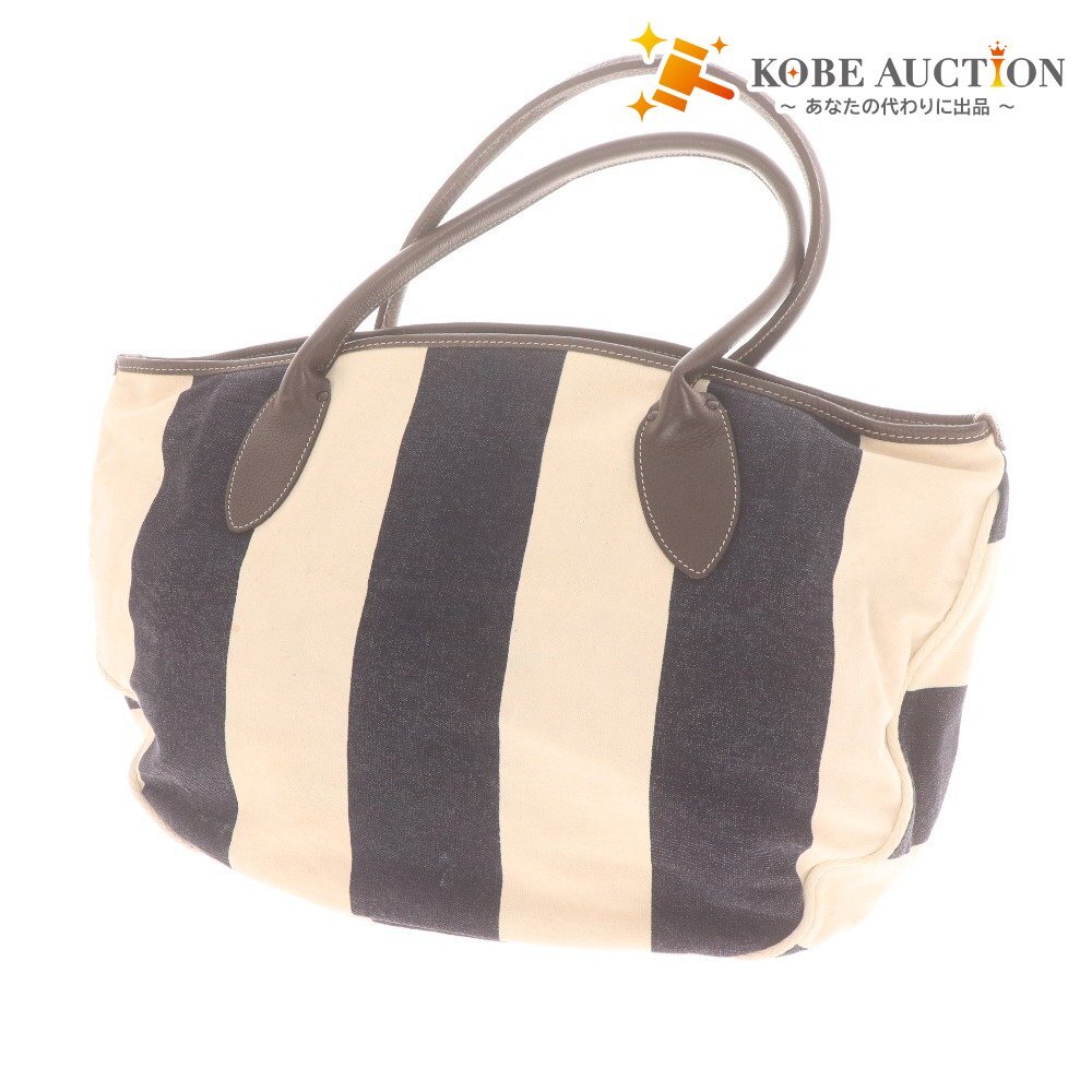 > ■ BONFANTI PER VISARUNO ボンファンティ ハンド トートバッグ 鞄 ストライプ柄 イタリア製 メンズ レディース アイボリー ネイビー系