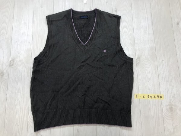 - FUJI YACHT レディース 刺繍入り Vネック ニットベスト ダークグレー