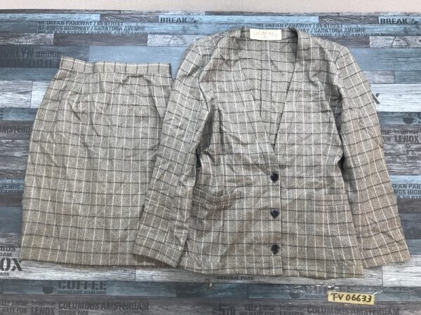 - DOMANI レディース チェック スーツ スカート 薄手 肩パッド 上下セットアップ 下40 グレー黒