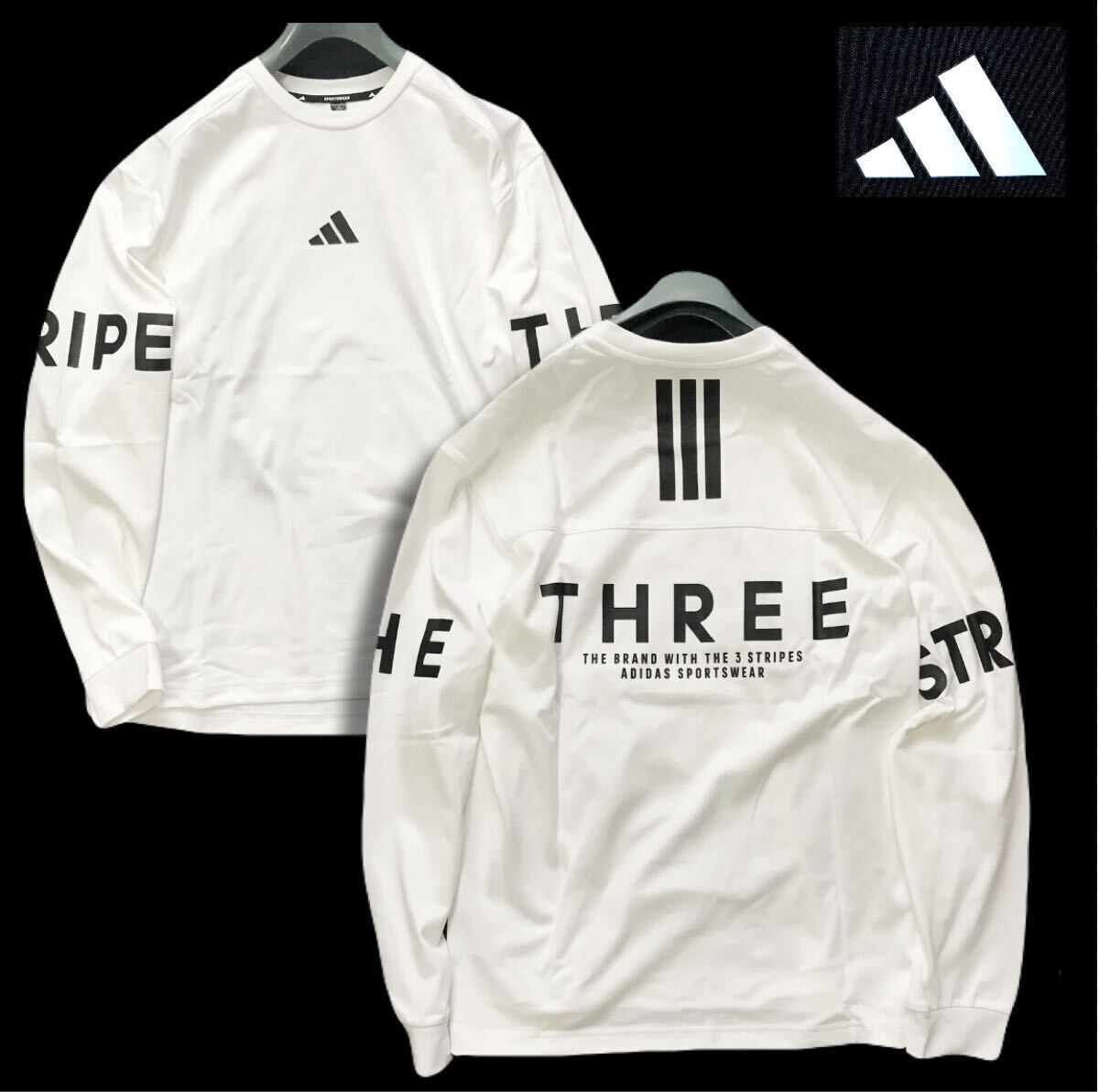 > ☆147新品【メンズM】白 オールシーズン adidas アディダス ゴルフに最適 背面BIGロゴ 厚手 クルーネック ワーディング 長袖 シャツ