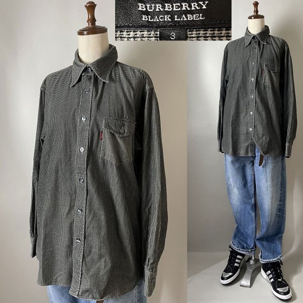 > ★【国内正規品 日本製】バーバリー ブラック レーベル コットン ポリウレタン 起毛 生地 長袖 細かい 千鳥格子柄 ロングスリーブ シャツ 3