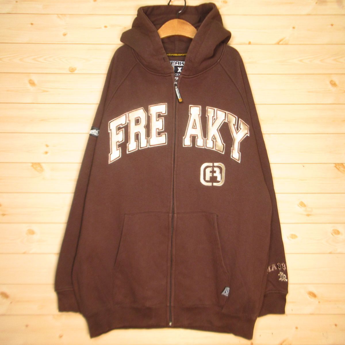> ◎FREAKY MASSIVE フリーキー マッシッブ ジップ パーカー スウェット 裏起毛 ヘビーウェイト B系 HIPHOP メンズ 茶色 XL◆AA5056