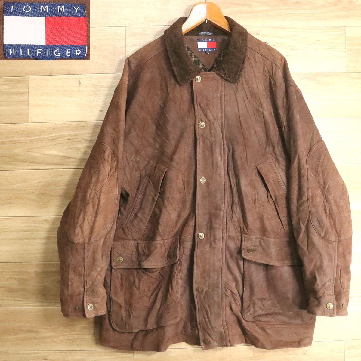 > H3S/S6.10-1 TOMMY HILFIGER トミーヒルフィガー 本革 スエード レザージャケット スウェード ハーフコート L ブラウン 古着