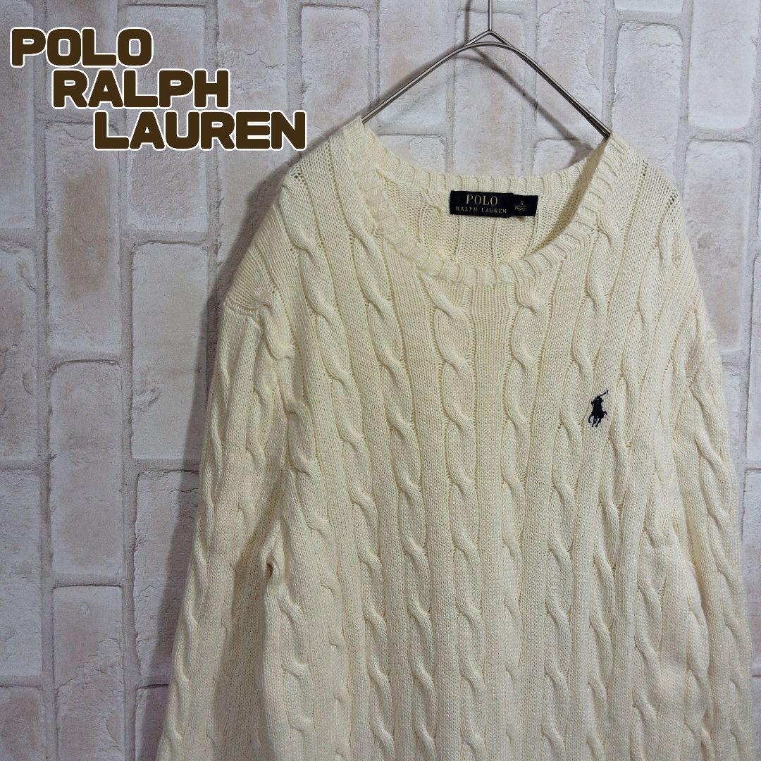 - ポロラルフローレン ニット セーター ケーブル ベージュ オフホワイト