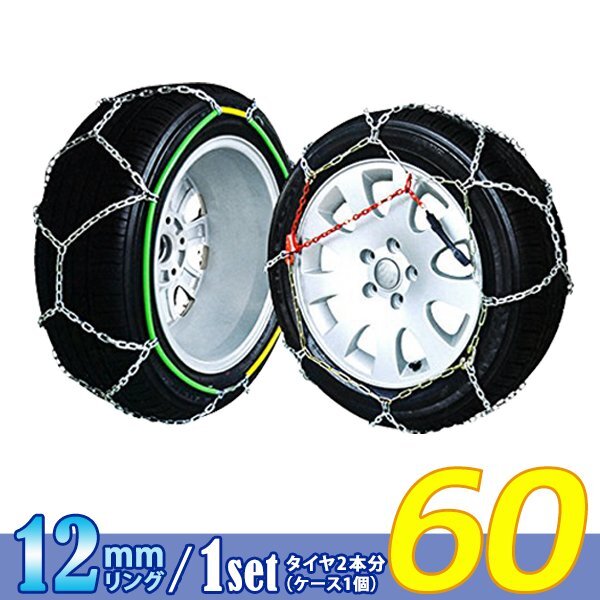 > 超簡単 ジャッキアップ不要 高耐久12mm リング タイヤチェーン/スノーチェーン 金属製 亀甲型 収納ケース付 13インチ 170/80R13