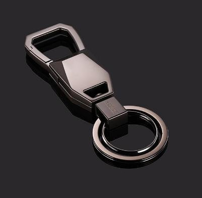 - カラビナ 付き キーホルダー ブラック キーリング ダブルリング キーフック おしゃれ ビジネス 普段使い ☆n341