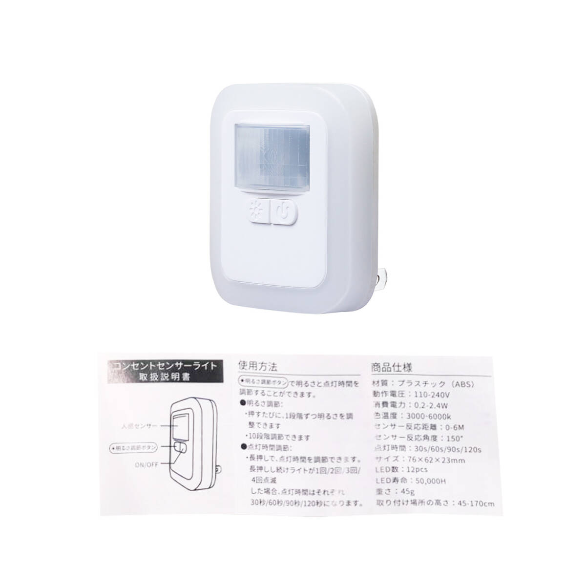 - 人感センサーライト 室内 コンセント フットライト 足元ライト 人感センサー 足元灯 ナイトライト コンセント ベッド ライト(暖色);J3354;