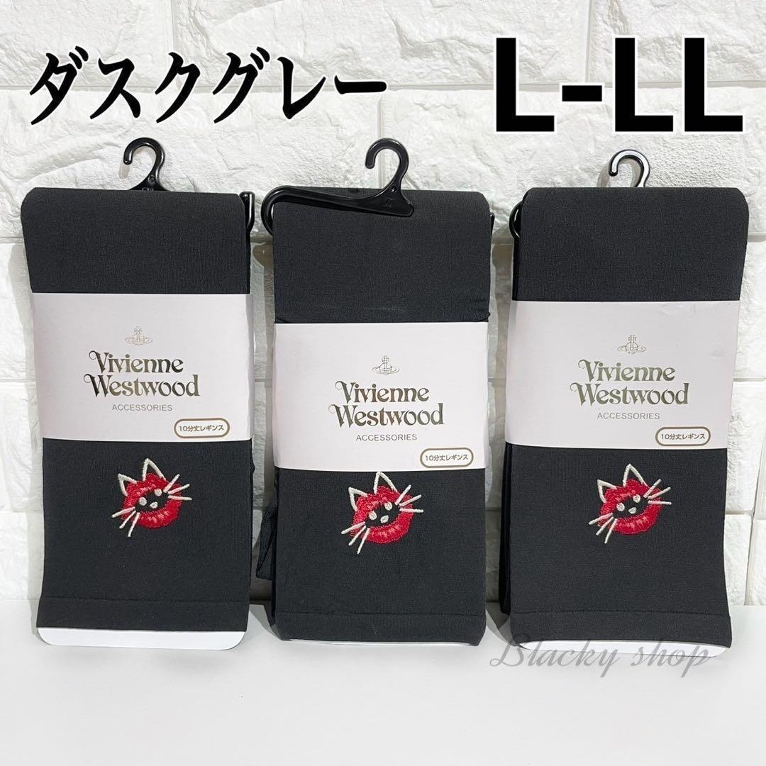 - 【3足セット】 ヴィヴィアン ウエストウッド キャット レギンス 110デニール 未使用 ダスク グレー L-LL 10分丈 厚手 タイツ ストッキング