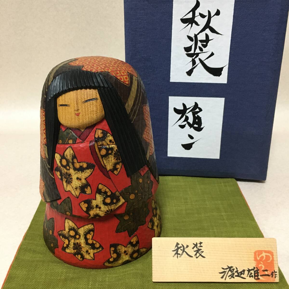 - E888 渡辺雄二 こけし「秋装」箱付き 創作こけし 文部大臣賞受賞作家