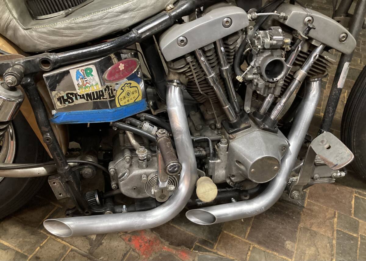 > ショベル ワンオフ マフラー オールドスタイル スラッシュカット 検 リジット パン アーリー エボ ハーレー R