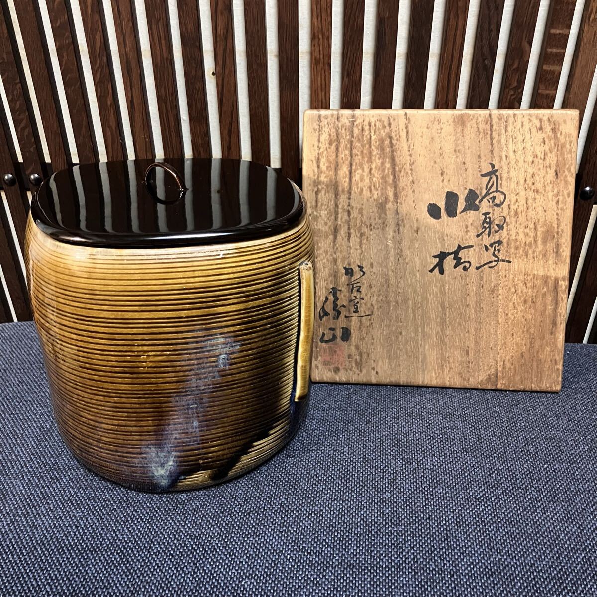 - 佐久間 勝山 水指 高取写 裏千家 萬古焼 松古窯 茶道具 刻印有り