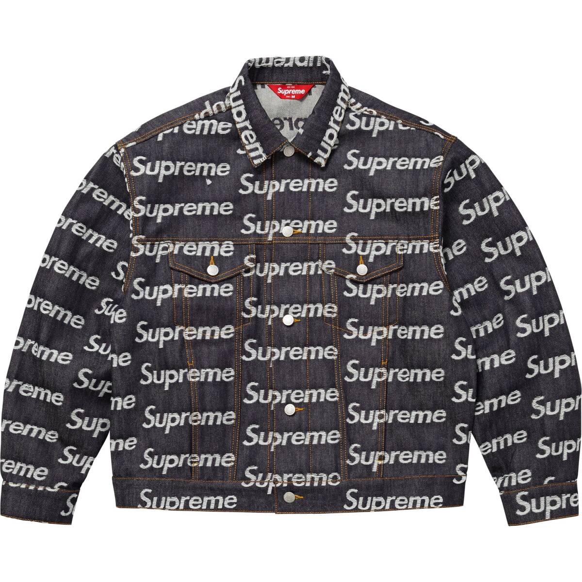 > Supreme Jacquard Logos Denim Trucker Jacketシュプリーム ジャカード ロゴズ デニム トラッカー ジャケットRigid Indigo #XL 新品 送料込
