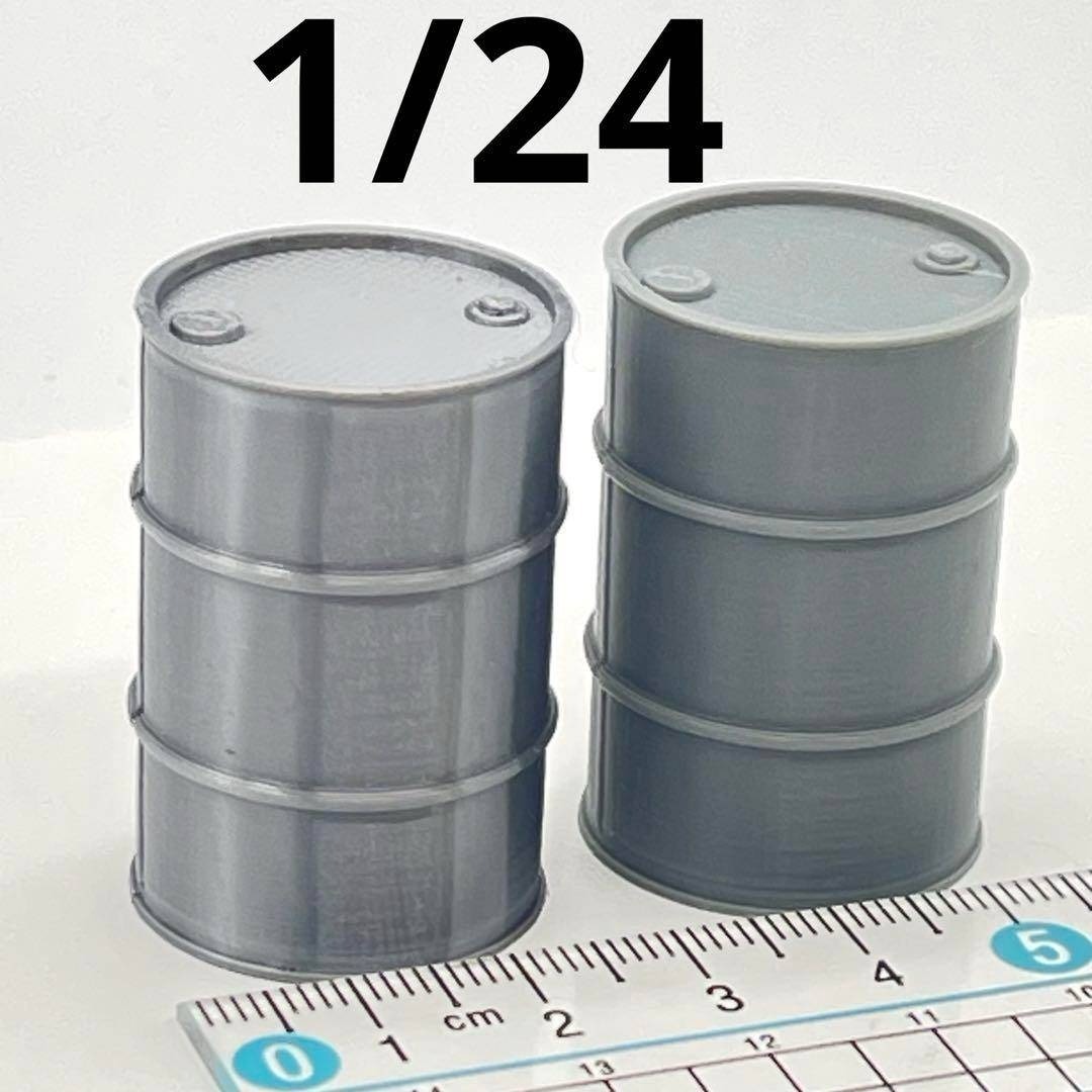 - 1/24 ドラム缶2個 シルバー グレー ミニチュア ドールハウス ミニカーに フィギュアに 1/64より大 ミニチュアイメージ