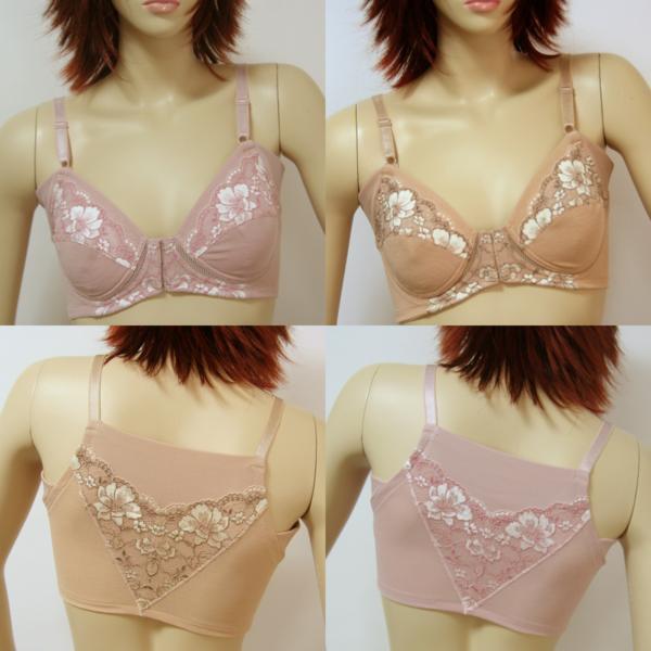 - 送料無料◆超お得◆2色組◆綿混素材◆吸汗パッド付き◆フロントホック◆ノンワイヤー◆背中&脇すっきり◆汗取りブラ(A/80/ピンク&ベージュ)