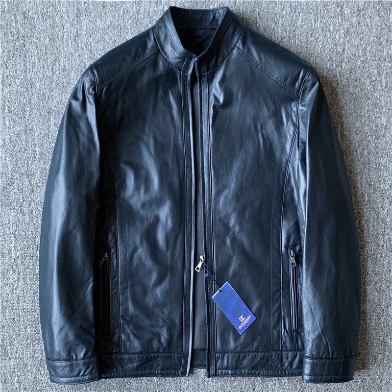 - 最高級 ラムレザー DCKMANY 新品 上質羊革 イタリアレザー ジャケット 本革 メンズ 革ジャン ライダース ラム ブルゾン/黒青D9602-3XL