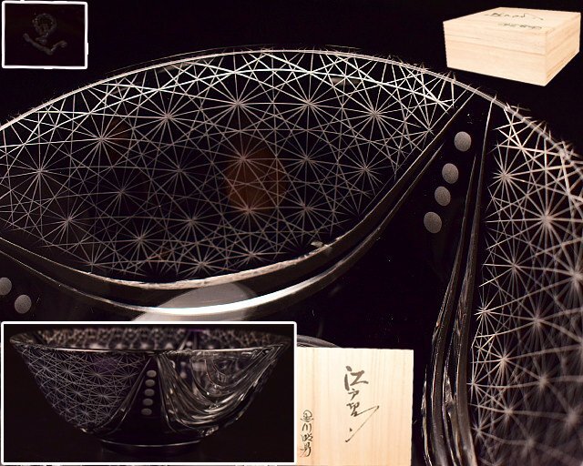 Y223 【泉美】黒川昭男作 江戸切子 グラス カットグラス ガラス 硝子 切子 共箱入