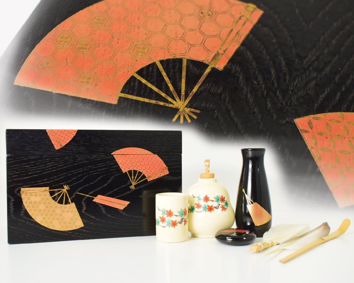 Y56 【泉美】茶通箱 茶箱 茶杓 茶巾筒 振出 組小羽根 羽箒 棗 茶道具 茶器