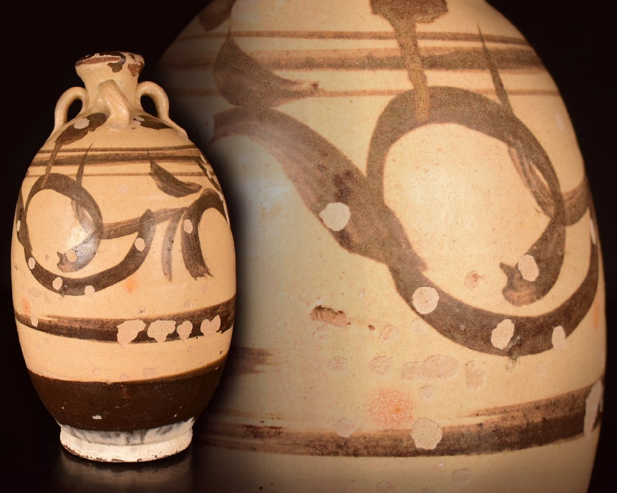 X437 【泉美】磁州窯 旧家初出 花瓶 花入 花生 花器