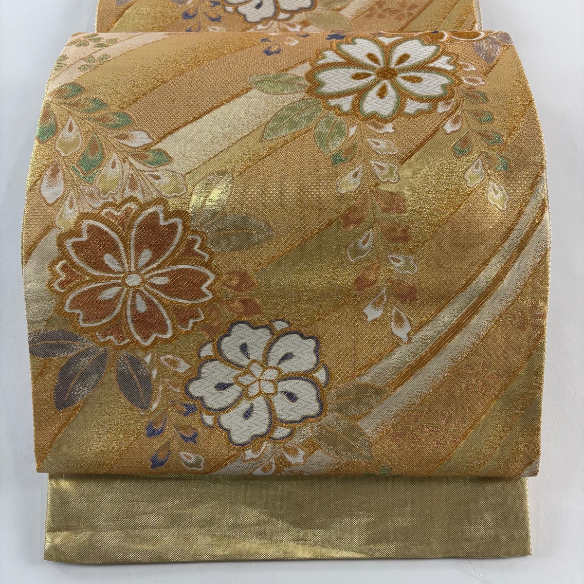 - 【美品】 袋帯 秀品 桜 金糸 箔 金色 六通 正絹 【中古】