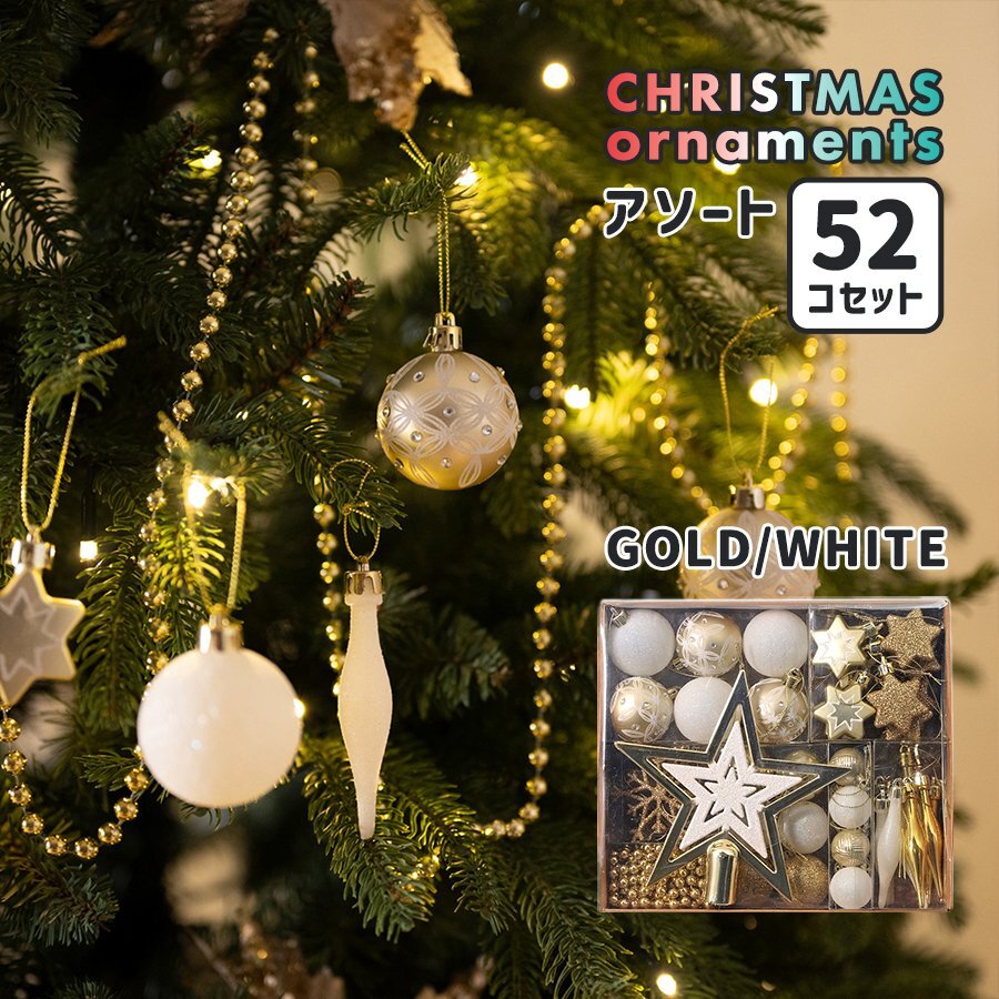 - クリスマスツリーオーナメント アソート 52個セット GOLD/WHITE オーナメントボール 装飾 Xmas Christmas デコレーション インテリア 雑貨