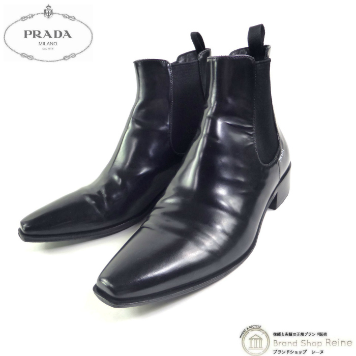 - プラダ (PRADA) レザー サイドゴア ブーツ スクエアトウ 靴 #38 ブラック(中古)