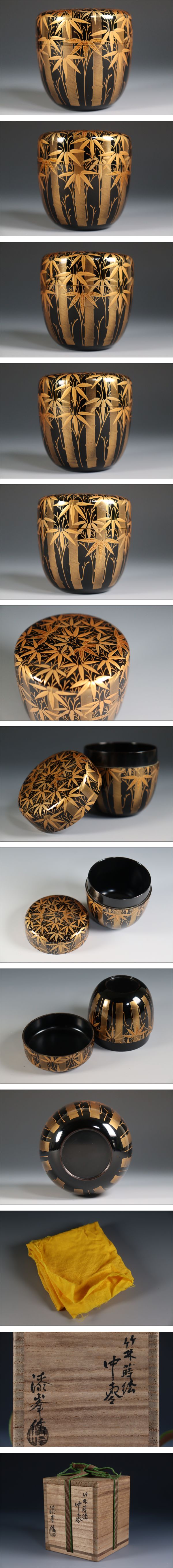 - 蔵出し品 漆 新谷漆峯 竹林蒔絵 中棗