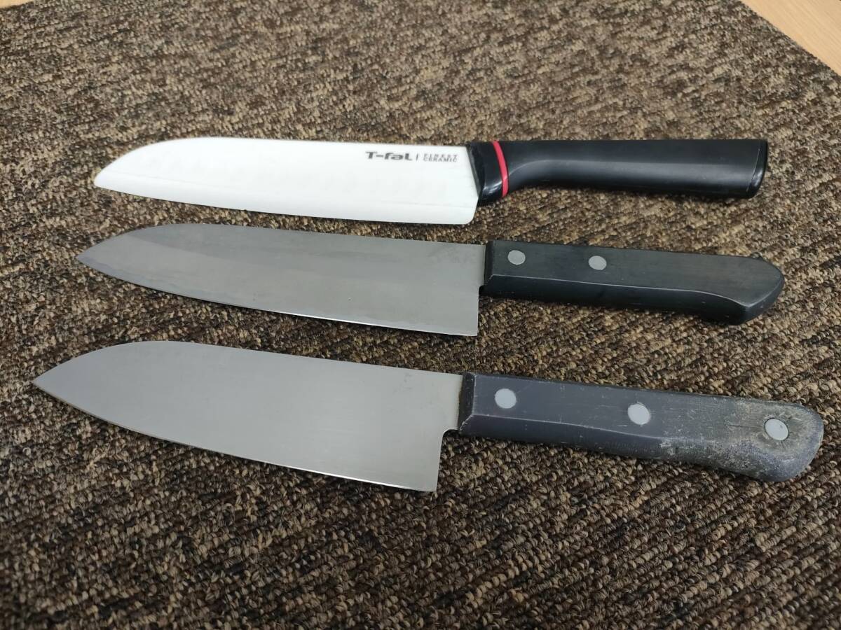 > 三徳包丁 三本セット T-fal 包丁 ※欠けあり メンテナンス必須