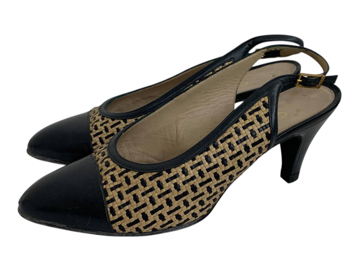 - CHANEL (シャネル) バンプス ラフィア素材 イタリア製 5 ブラック×ベージュ レディース/004