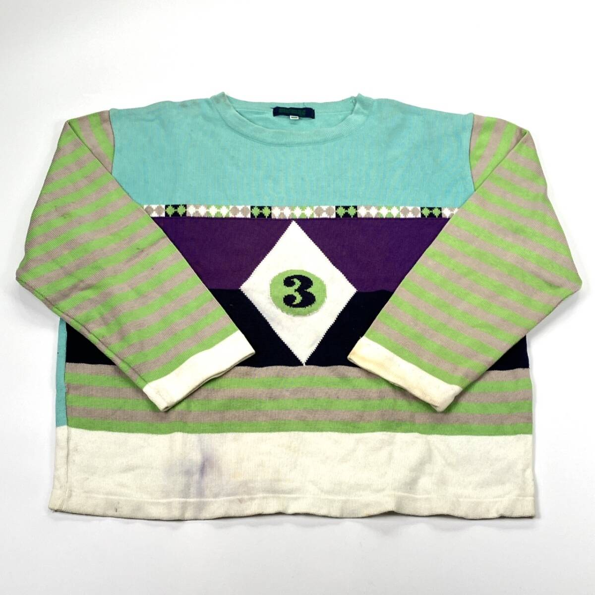 > M〜L相当 micmac PARIS ミックマック パリ レナウン製 80s〜90s レディース コットンニット ボーダー マルチカラー レトロデザイン sw1003