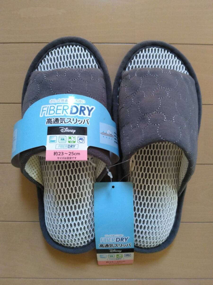 - ディズニー☆ミッキー 可愛い オシャレ 高通気 洗える メッシュ スリッパ 大人用 女性用 23~25cm M グレー☆しまむら FIBER DRY 消臭 抗菌