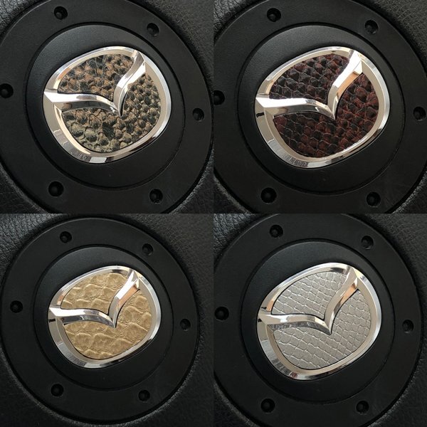 - マツダ ステアリング エンブレムシート 蛇革調 ヘビ柄 簡単取付け ハンドル ZEROWIN MAZDA ドレスアップ 送料無料 日本製
