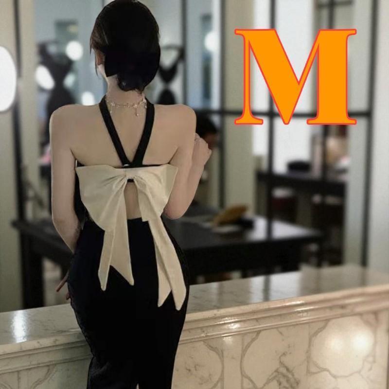 - M バックリボン ホルターネックドレス ロング ラウンジ 黒 キャバ