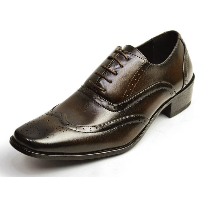 > 新品■26.5cm ビジネスシューズ 内羽根 ウィングチップ レースアップ メンズ フォーマル 冠婚葬祭 スクエアトゥ 5cm 身長アップ 紳士靴