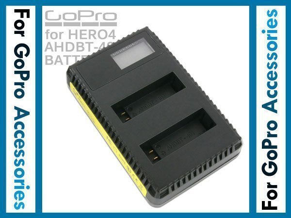 GoPro HERO4用 USB デュアルチャージャー バッテリー充電器 互換 AHDBT-401 充電池 ディスプレイ内蔵