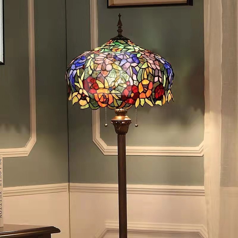 - 人気美品★ 【ステンドランプ ステンドグラス アンティーク 花柄】レトロな雰囲気がおしゃれ★ ティファニー技法 照明 フロアスタンド