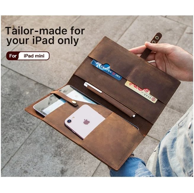 - iPad mini 6収納ケース 手帳型 iPad mini5バッグ 8.3インチ 大容量 本革 おしゃれ 耐衝撃 収納バッグ 全面保護 iPad mini6レザーケース