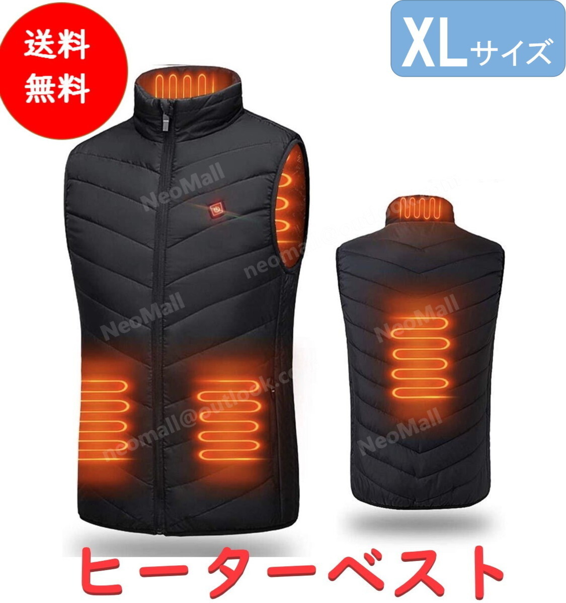 > ヒーター内蔵 発熱ベスト ブラック XLサイズ 激暖 防寒グッズ 通勤通学 温度調節 チョッキ アウトドア USB給電 屋外 汎用 0-059