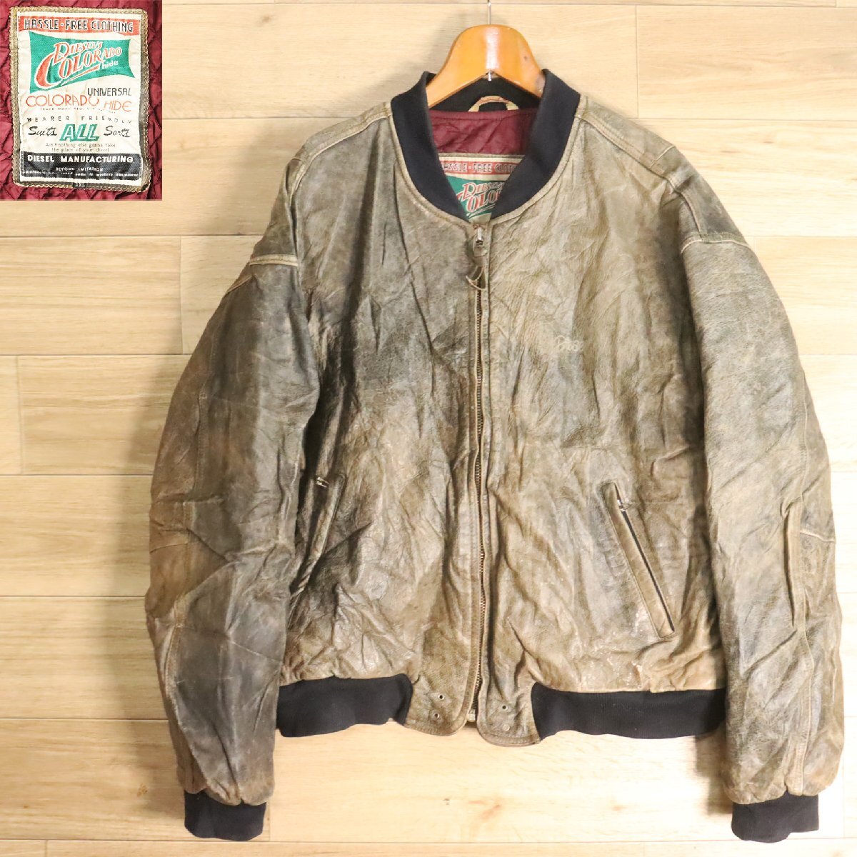 - H4O/Y5.16-7 Diesel ディーゼル レザースタジャン アワードジャケット バーシティジャケット 本革 革ジャン 皮ジャン XXL