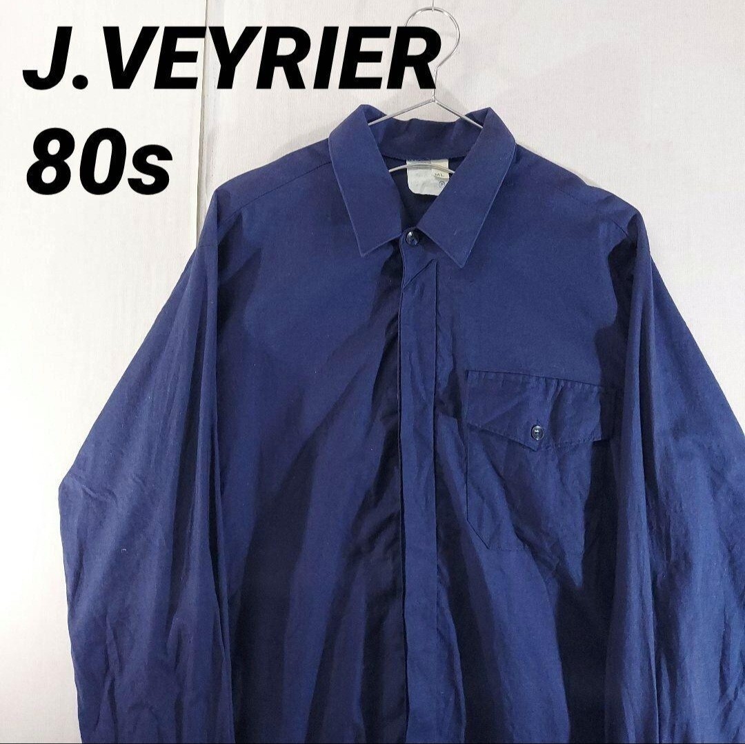 - 古着 J.VEYRIER 長袖シャツ フレンチミリタリー フレンチワーク 80s 比翼 ブルー ヴィンテージ