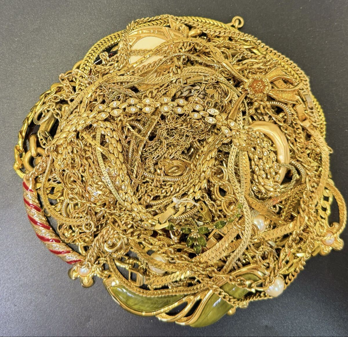 - ゴールドカラー アクセサリーまとめ売りおまとめ 1kg ネックレス ブレスレットなどヴィンテージ 大振りブランド刻印