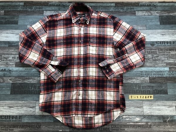 - メンズ 刺繍入 柄切り替え バンドカラーシャツ L 黒グレージュ