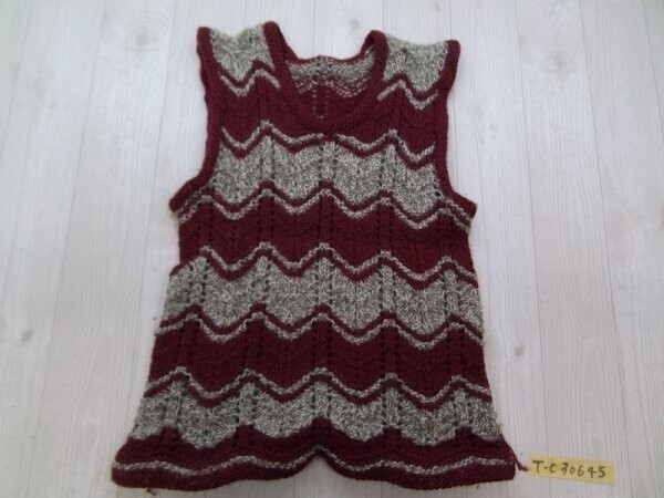 - レディース ハンドメイド風 柄編み ニットベスト 赤ベージュ