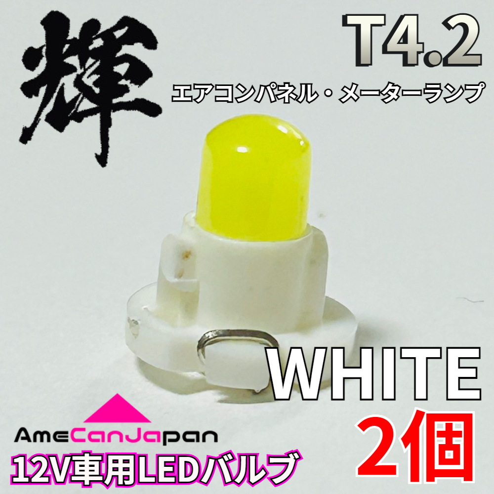 > AmeCanJapan 高輝度 LED 車用 T4.2 メーターランプ エアコンパネル ランプ 打ち換え用 電球 パーツ 車検対応 ホワイト 2個 輝