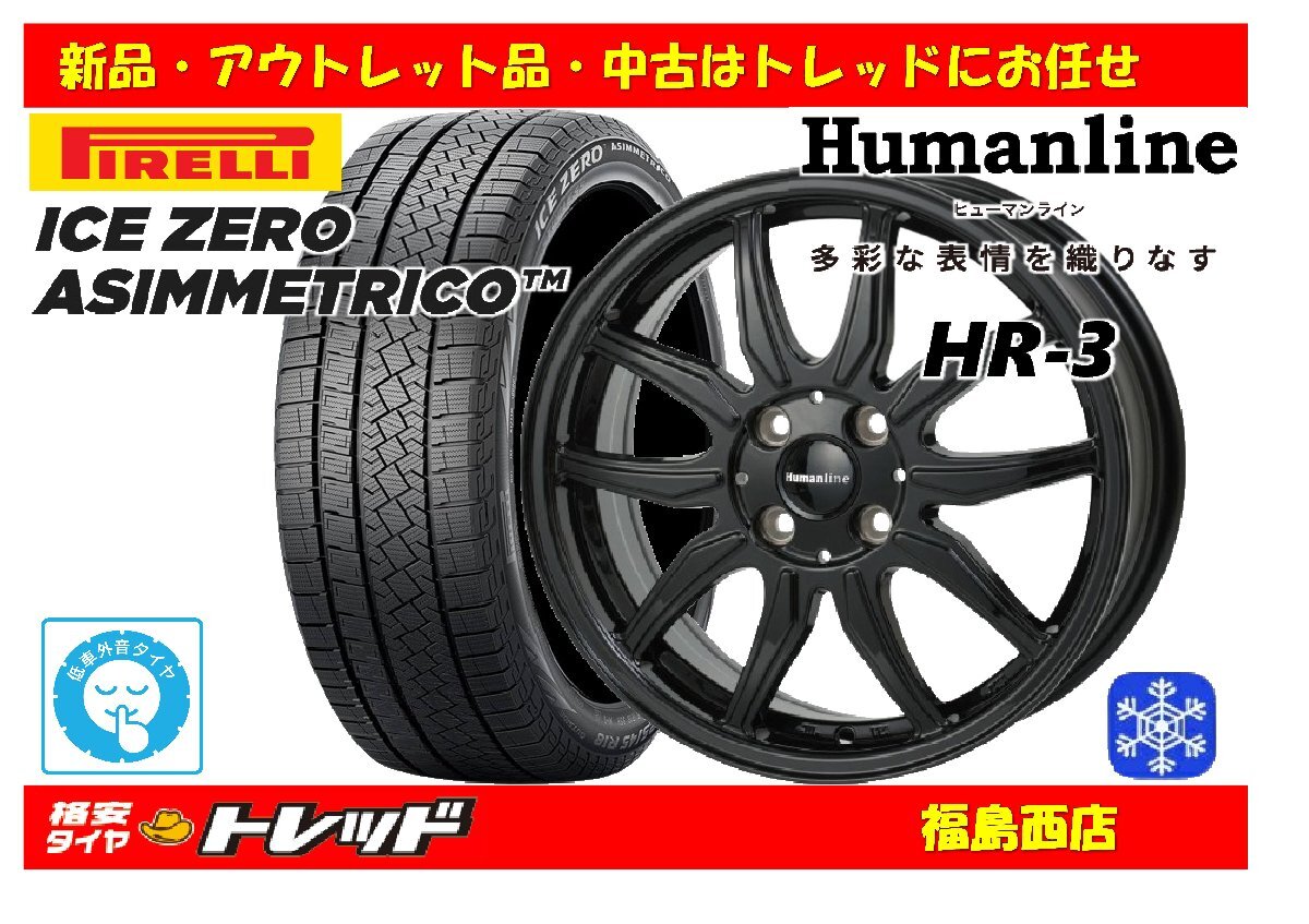 - 福島西 新品 スタッドレスタイヤホイール4本SET ヒューマンライン HR-3 16インチ 6.0J 100/4H +40 & ピレリ アイスゼロ 195/65R16 22年製