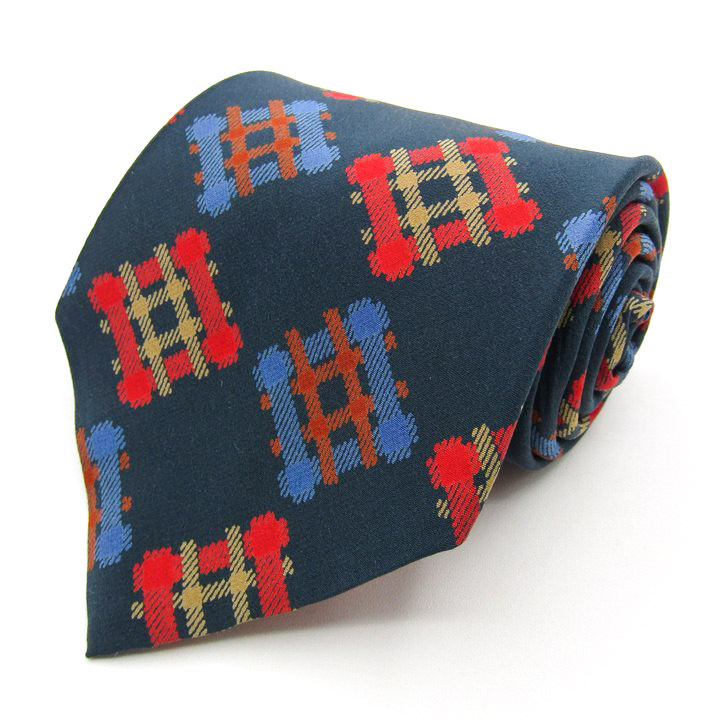 - イヴ・サンローラン ブランドネクタイ YSL チェック柄 格子柄 シルク PO メンズ ネイビー YVES SAINT LAURENT