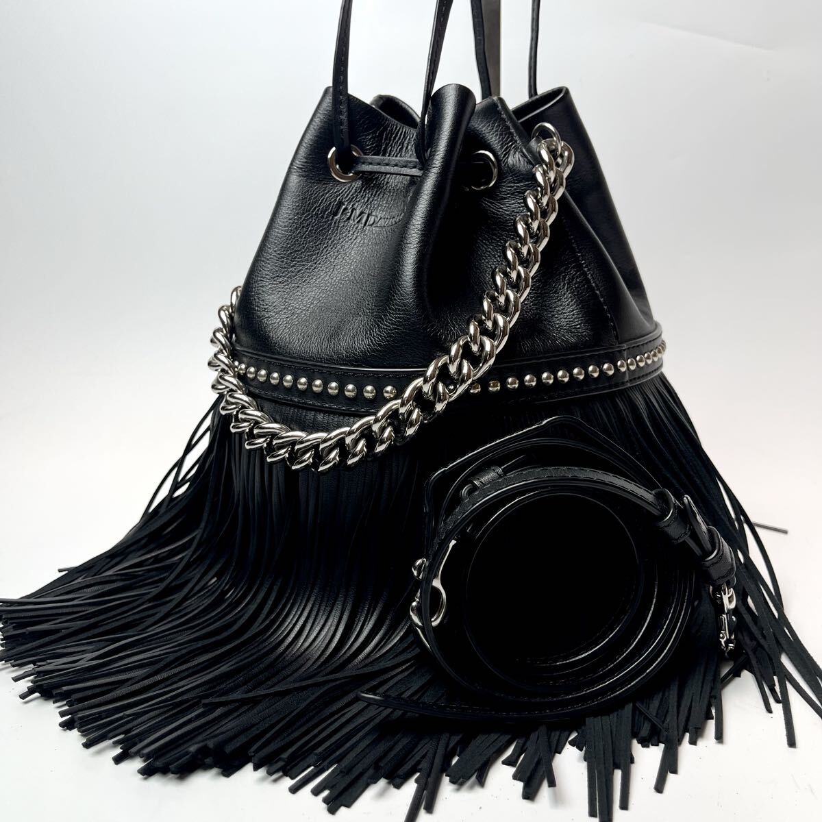 > ●新品同様 J&M DAVIDSON ジェイアンドエムデヴィッドソン カーニバル ショルダーバッグ ハンドバッグ 2way フリンジ レザー ブラック 黒
