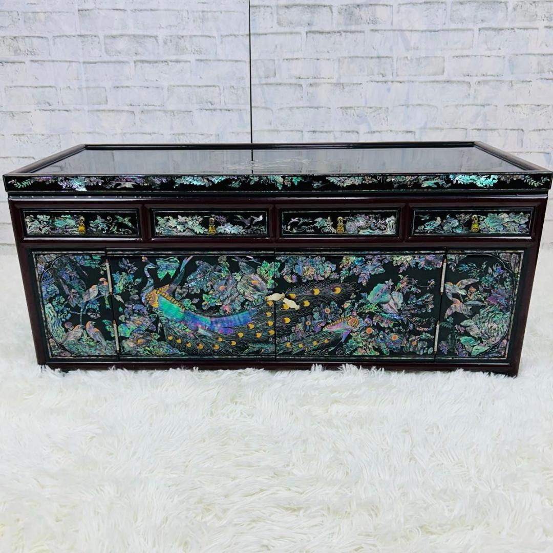 - 螺鈿細工 箪笥 アンティーク 木製 黒塗り 収納 家具 インテリア タンス ②